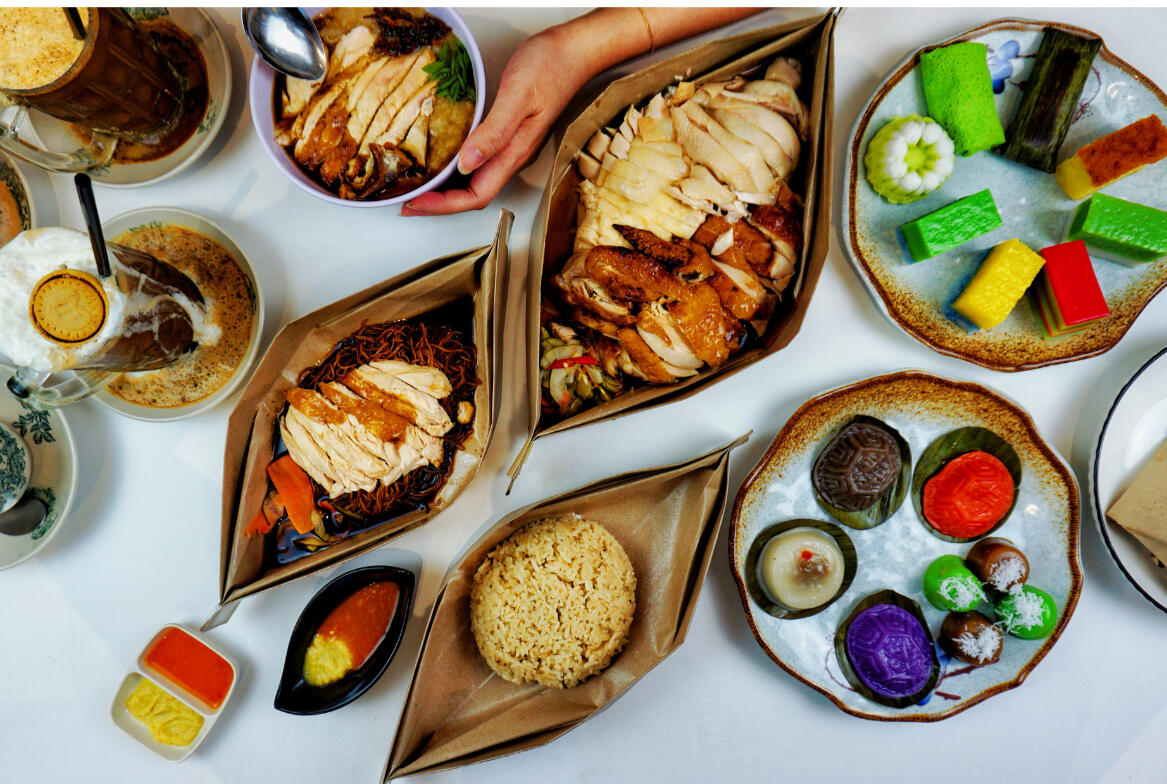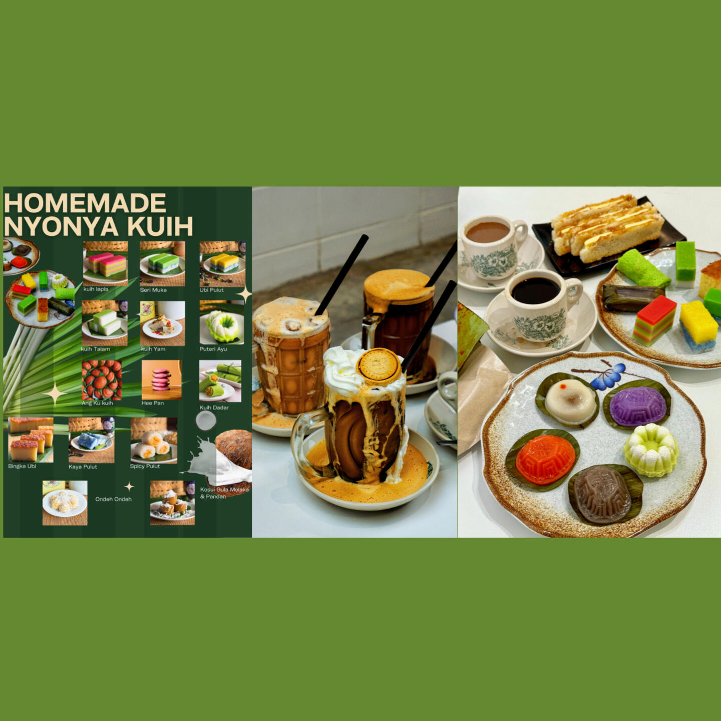 Roaster Chicken Rice, Cold boiled Chicken, Curry Chicken Noodle, Porridge, Gyoza, Tomyam, Nyonya Kuih, Nanyang coffee, Milk Tea, Butter Kaya Toast